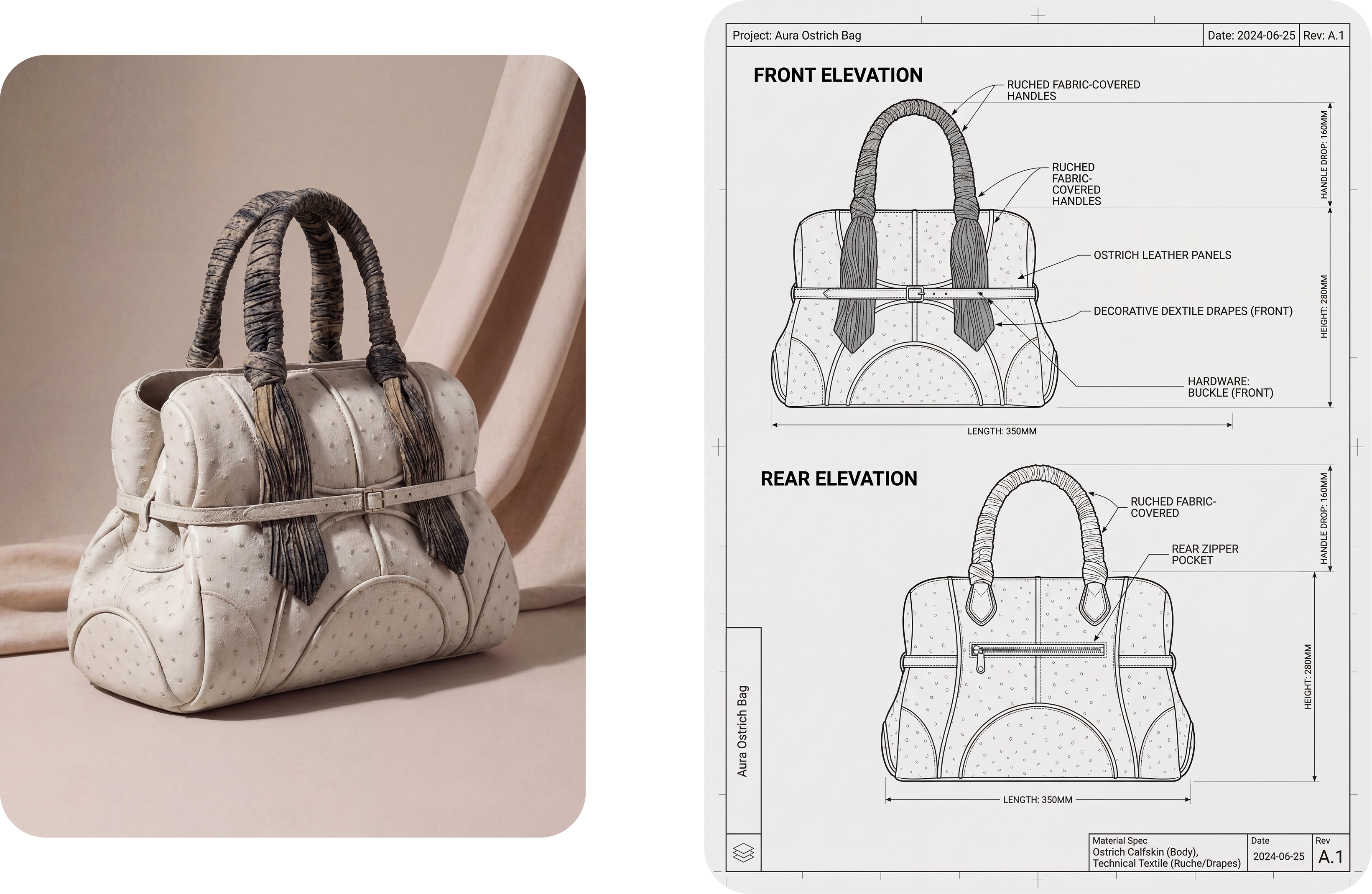 LOOK supports fashion design across multiple disciplines, including garments, bags, shoes, and jewelry.