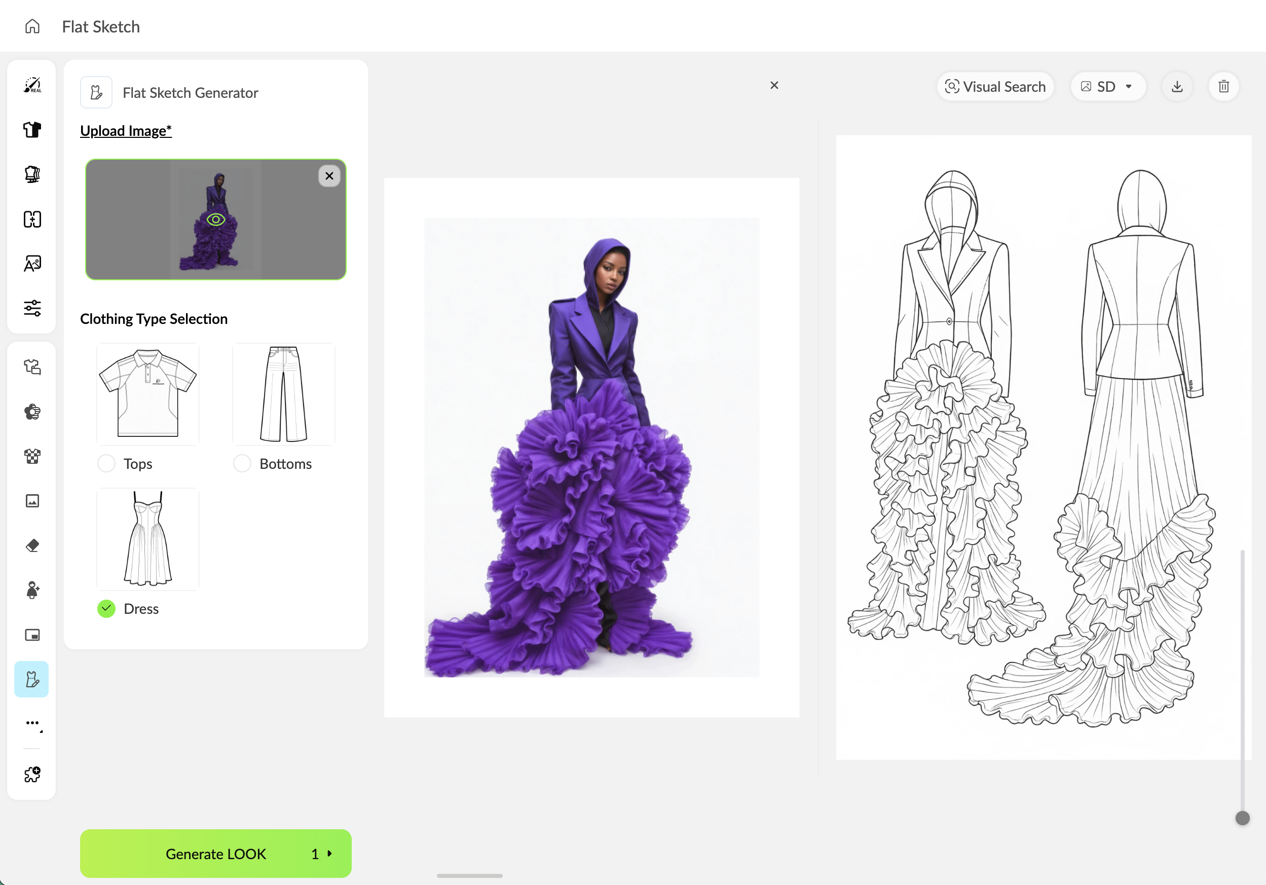 LOOK enables designers to create fashion designs using text prompts, reference images, or real-time sketching. Its flexible interface allows users to design in the way that feels most natural to you.